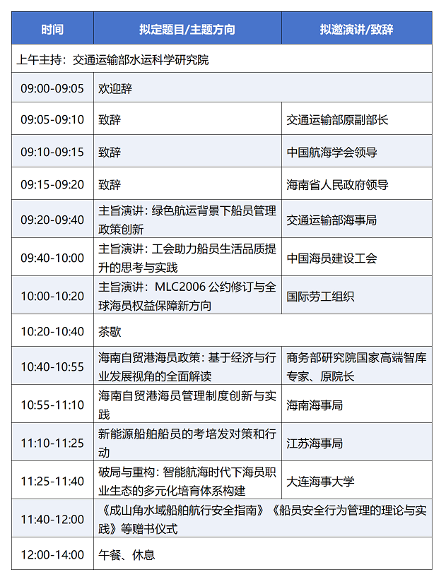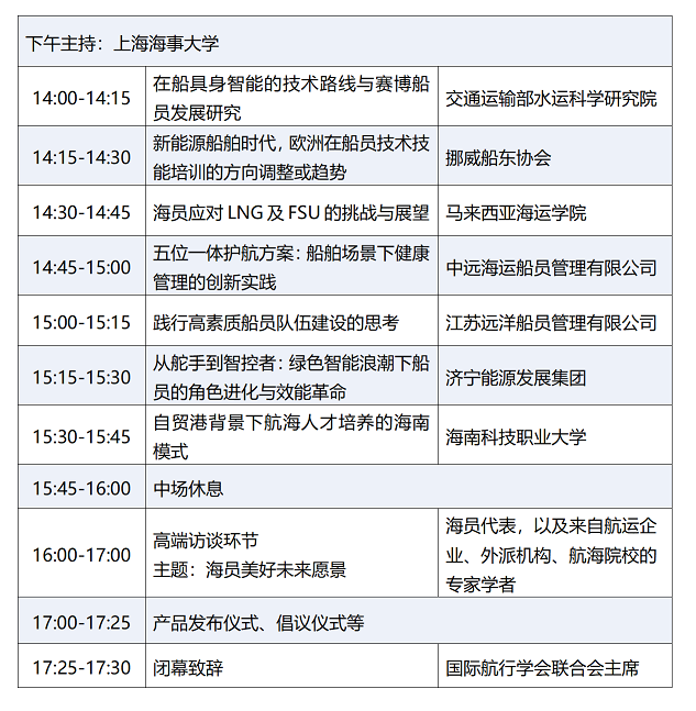 2025年中国国际海员论坛以“向海图强 成就海员美好未来”为主题,聚焦海员管理制度创新、智能航运技术应用、绿色低碳转型及权益保障等方面,邀请海事主管机关、国际劳工组织、工会组织、知名航海院校、全球航运企业、外派机构及海员代表等国内外知名专家出席并发表演讲,在绿色低碳、智能化高速发展的背景下,与会嘉宾将深度解析未来航运发展愿景,并探索数智化时代海员职业发展的新路径。